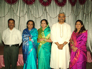We had decorated our Bunglow facade, with a lot of "running lights". The climate was a bit chilly so we had lit bonfires. We had arranged for 'live' music, playing mostly nostalgic Kishor Kumar, and Mohamad Rafi, numbers. Guests started arriving by 7 PM and it was past midnight, by the time the last guests departed. Almost all members of our extended family and some close friends and colleagues attended. Shri. Jayantrao Patil, to whom my cousin Shailaja is married and Shri. Satyajit Deshmukh, to whom my other cousin Renuka is married too attended. My friend and Brother-in-law, Ajit Suryavanshi, to whom Anija, my cousin is married was also there. Amongst my friends, Shri Vinod Digrajkar, Phaltane, Kashikar, Satpute, Maniyar, Saudatti, Anil Kulkarni, and many others were present. All of us enjoyed the